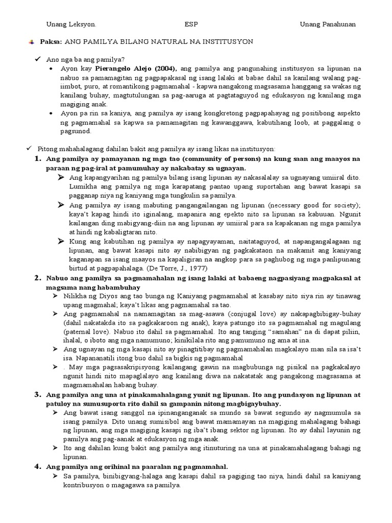 Pitong dahilan kung bakit itinuturing na natural na institusyon ang pamilya. 3 on a question. 1 Alamin Ang modyul na ito ay naglalayon na maipabatid sa mga mag-aaral ang mga dahilan kung bakit ang pamilya ay isang likas na institusyonLayon ng aralin na ito na maunawaan kung paanong nabuo ang isang pamilya at ang mga tungkuling kaakibat sa pagtataguyod nito. Ang pamilya ay pamayanan ng mga tao na kung saan ang maayos na paraan ng pag-iral at pamumuhay ay nakabatay sa ugnayan.