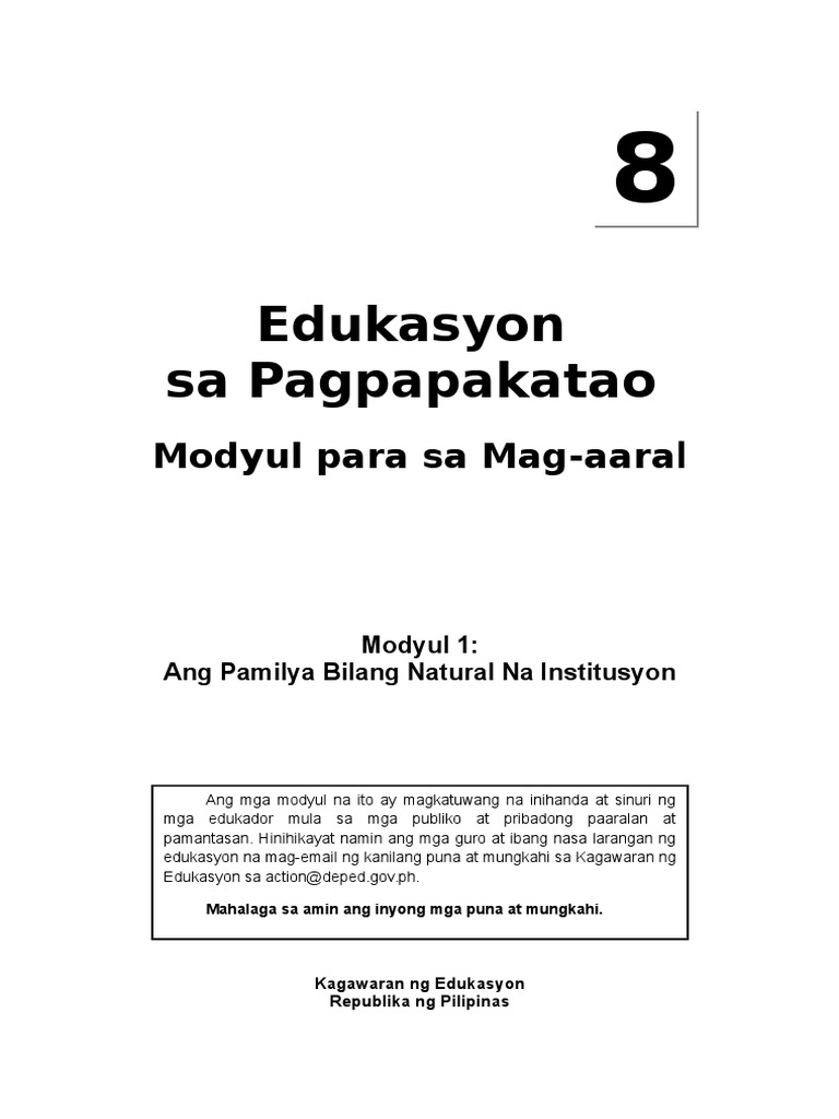 Edukasyon Sa Pagpapakatao Grade 8 Learner S Material
