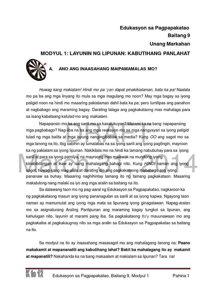 Esp Module 2 Docx 9 Edukasyon Sa Pagpapakatao 9 Edukasyon Sa Pagpapakatao 9 Unang Markahan U2013 Modyul 2 Sektor Ng Lipunan Salamin Ng Pagkatao At Course Hero