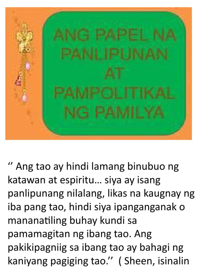 Panlipunang Gampanin Ng Pamilya Sa Edukasyon Sa Pagpapakatao