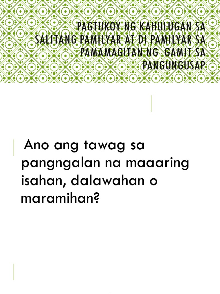 Ppt Filipino Pamilyar Atdi Pamilyar 2 Pptx Layunin Naibibigay Ang Kahulugan Ng Pamilyar At Di Pamilyar Na Salita Sa Pamamagitan Ng Paglalarawan Paksa Course Hero