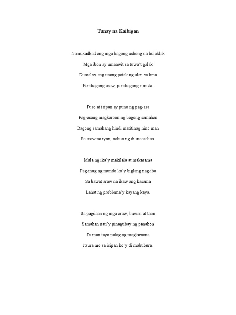 Tula tungkol sa pagibig na may tugmaan thanks 12 na pantig 4 na taludtod bawat saknong at may 3 na saknong - 1768891. Tula para sa kaibigan 12 pantig. Tuloy nagsisisi sa bandang huli.