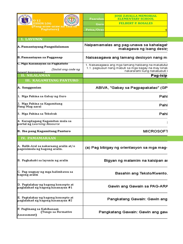 Pdf Level Grade Six Unit I Plan Pananagutang Pansarili At Mabuting Kasapi Ng Pamilya Edwin L Balila Jr Academia Edu