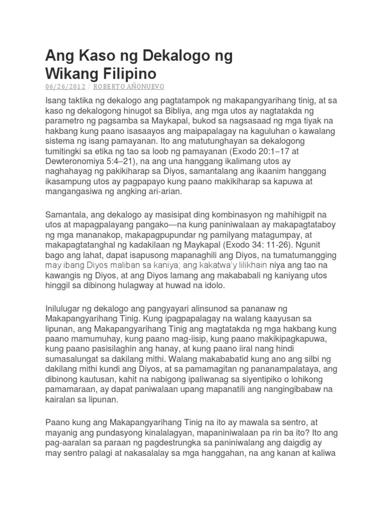 Ang Kaso Ng Dekalogo Ng Wikang Filipino
