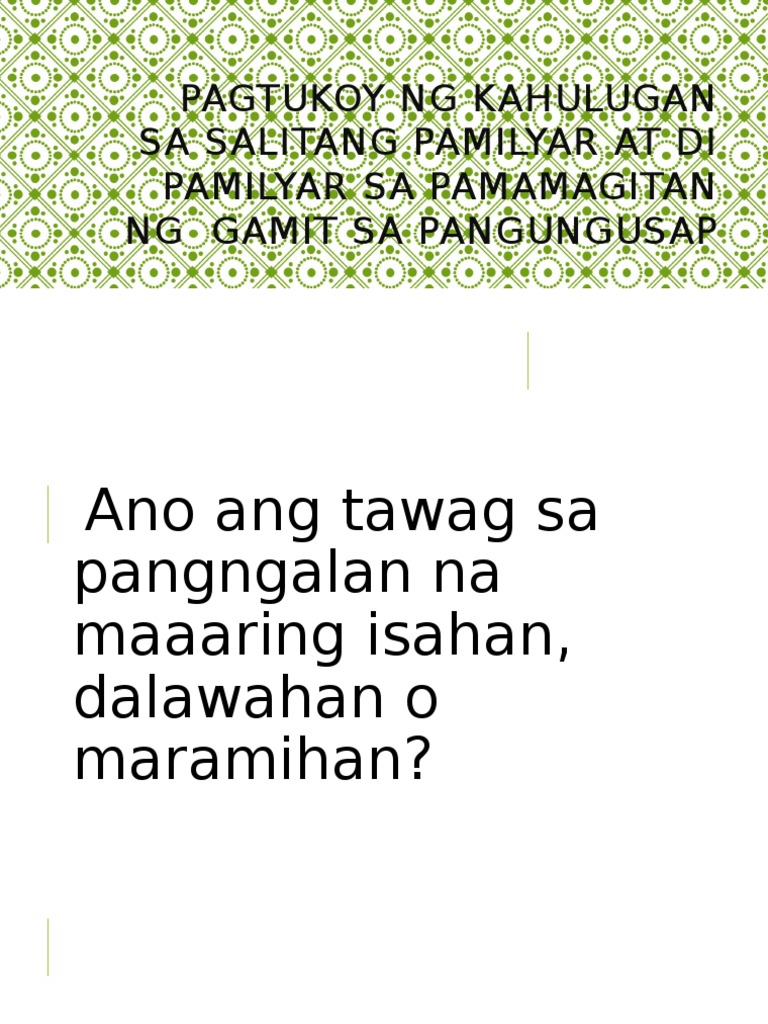 Pagtukoy Ng Kahulugan Sa Salitang Pamilyar At Di